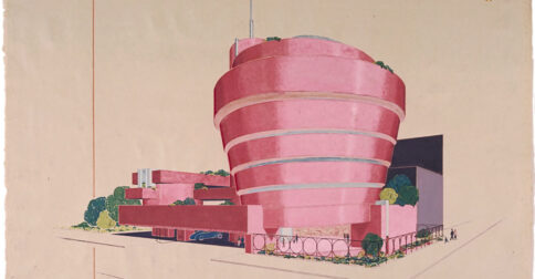Image via The Frank Lloyd Wright Foundation Archives Seen today, the Solomon R. Guggenheim Museum, designed by Frank Lloyd Wright, seems to occupy several time periods at once, looking both modern and somehow ancient. The latter quality surely has to do with its bright white color, which we associate (especially in such an institutional context) … Continue reading Frank Lloyd Wright Thought About Making the Guggenheim Museum Pink